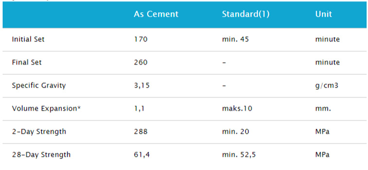Portland cement is a product which is obtained as clinker resulting from mixing at suitable rates, grinding and firing raw materials such as limestone, marl, clay, iron ore, pyrite ash, bauxite, etc. and a certain amount of setting regulator (generally gypsum) are ground together and sets after mixing with water and gains strength.