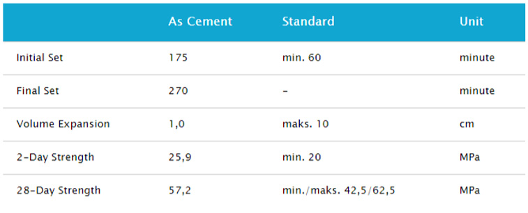 A product that is obtained as mineral additives (trass) at a rate defined in its standards (maximum 20%) and Portland cement clinker are ground with a certain amount of setting regulator (gypsum) and sets after mixing with water and gains strength.